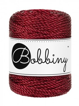 Bobbiny Metallic Platinum Macrame 3ply Rope 3mm 50m, Red