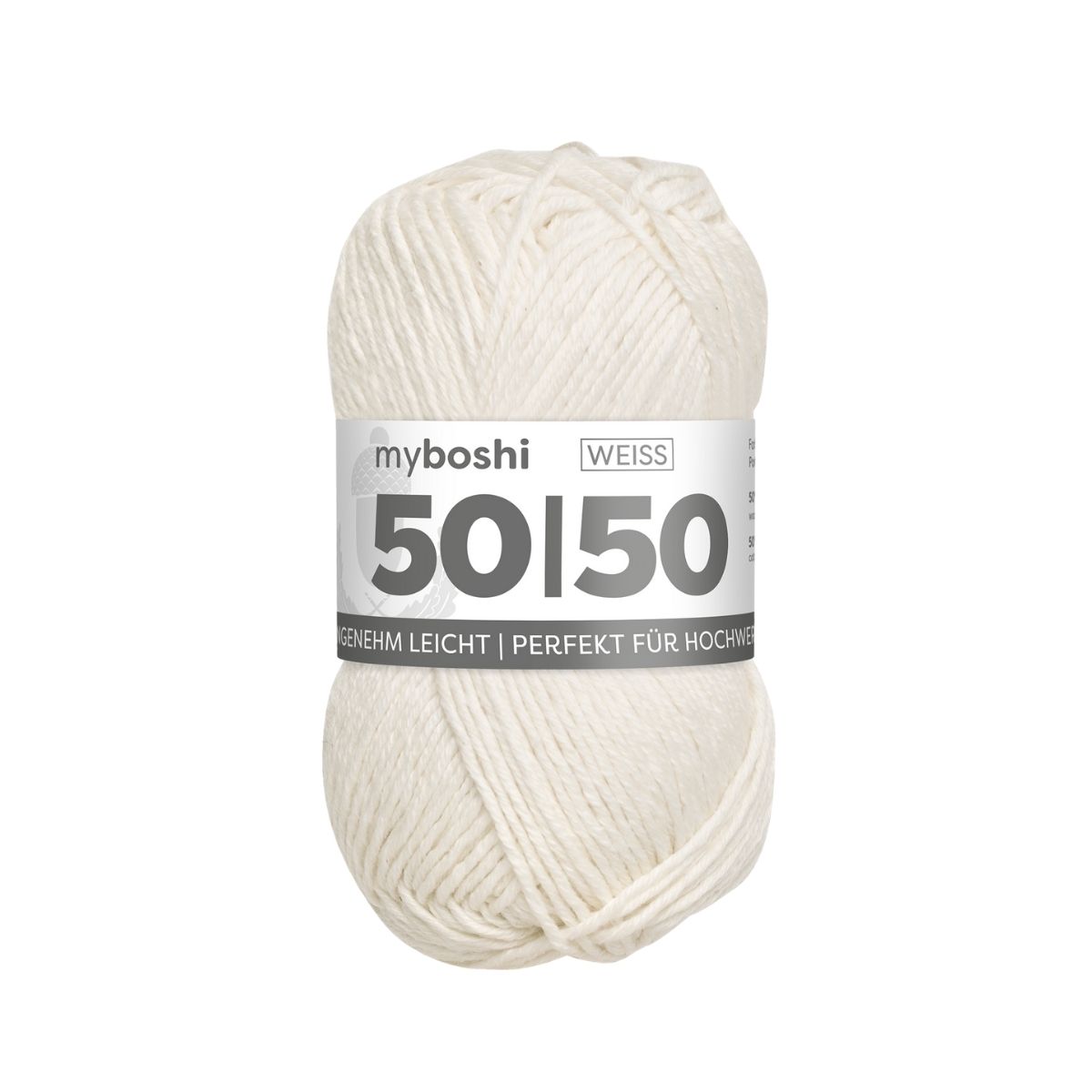 Du möchtest dir einen Pullover aus Merino stricken aber hast Angst, dass das Teil zu empfindlich wird? Dann ist die myboshi 50|50 genau das Richtige für dich. Der Baumwoll-Merino Mix fasst sich wunderbar weich an, ist aber dank Baumwolle pflegeleichter als reines Merino. Die myboshi eignet sich wunderbar für Kleidungsstücke oder schöne Tücher mit Lochmuster, denn das Maschenbild kommt deutlich und strukturiert zum Vorschein.