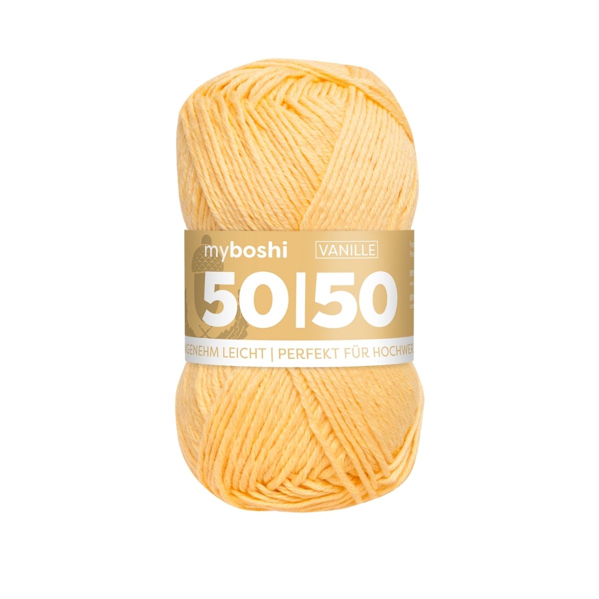 Du möchtest dir einen Pullover aus Merino stricken aber hast Angst, dass das Teil zu empfindlich wird? Dann ist die myboshi 50|50 genau das Richtige für dich. Der Baumwoll-Merino Mix fasst sich wunderbar weich an, ist aber dank Baumwolle pflegeleichter als reines Merino. Die myboshi eignet sich wunderbar für Kleidungsstücke oder schöne Tücher mit Lochmuster, denn das Maschenbild kommt deutlich und strukturiert zum Vorschein.