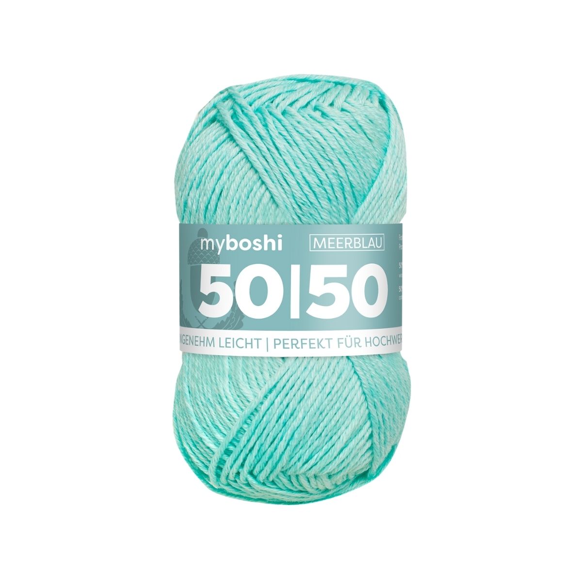 Du möchtest dir einen Pullover aus Merino stricken aber hast Angst, dass das Teil zu empfindlich wird? Dann ist die myboshi 50|50 genau das Richtige für dich. Der Baumwoll-Merino Mix fasst sich wunderbar weich an, ist aber dank Baumwolle pflegeleichter als reines Merino. Die myboshi eignet sich wunderbar für Kleidungsstücke oder schöne Tücher mit Lochmuster, denn das Maschenbild kommt deutlich und strukturiert zum Vorschein.