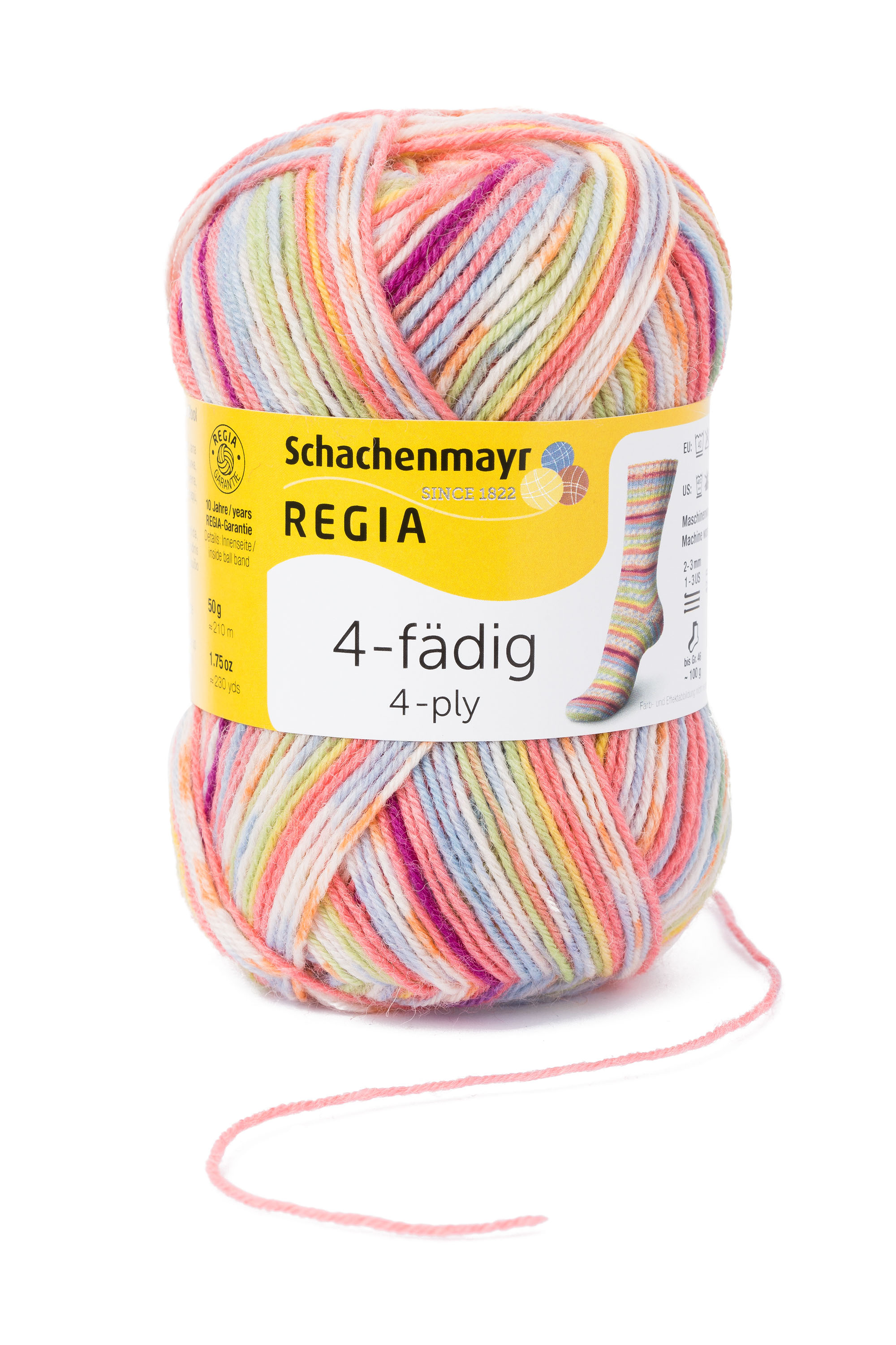 Für alle, die beide Strümpfe gleichzeitig stricken oder Kindergrößen arbeiten wollen, empfehlen wir die 50g Variante des 4-fädigen Sockengarn-Klassikers. Wie gewohnt natürlich mit allen Qualitätsvorteilen: Formstabil, äußerst strapazierfähig, maschinenwaschbar bei 40°C, filzfrei und trocknergeeignet. Mit 10 Jahren REGIA-Garantie.