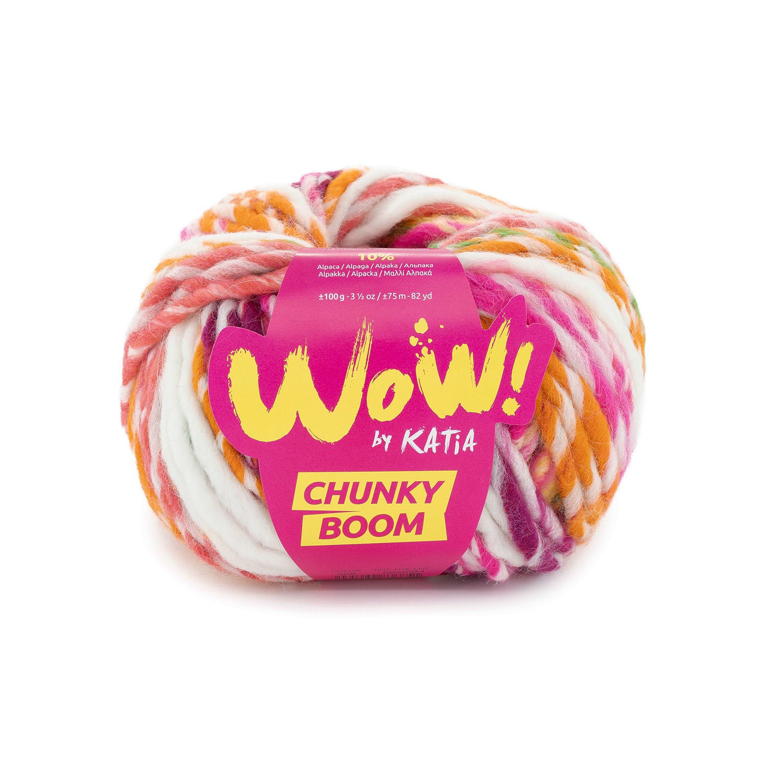 Mach dich bereit für eine Farbexplosion mit WOW! Chunky Boom! Diese Dochtwolle ist die perfekte Wahl für Liebhaber von extravaganten und lebendigen Modetrends, die das Stricken lernen möchten. Kreiere einzigartige und auffällige Stücke, um bei jeder Gelegenheit herauszustechen. Kombiniere dieses dicke und schnell zu strickende Garn mit den einfarbigen Farben von WOW! Chunky, um allerlei fröhliche und lustige Accessoires sowie moderne übergroße Kleidungsstücke für die Mutigsten zu stricken. Lass deiner Kreativität freien Lauf, um deinen eigenen Stil zu stricken!