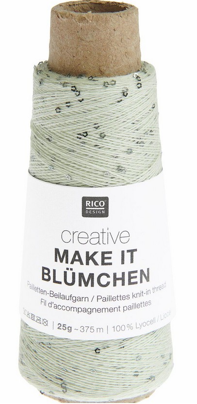 Creative Make It Blümchen ist ein glitzerndes Beilaufgarn, das mit zarten Pailletten in Blütenform verziert ist. Die kleinen Blümchen sind harmonisch in den Trägerfaden aus 100 % Lyocell eingearbeitet und farblich perfekt abgestimmt. Bei der Verarbeitung wird das Beilaufgarn einfach mitgeführt, wodurch das Strickstück einen außergewöhnlichen und auffälligen Look erhält.