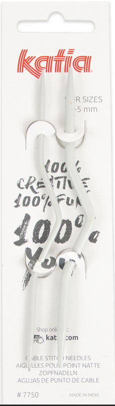 Set aus zwei Hilfsnadeln zum einfachen Stricken von Zopfmustern. Es besteht aus zwei Zopfnadeln von 2 mm und 5 mm Stärke zur Verwendung mit Garnen verschiedener Stärken. Durch die gebogene Mitte der Hilfsnadel legst du die zu verzopfenden Maschen ganz einfach und bequem still. Die glatte Aluminiumoberfläche der robusten Nadeln lässt die Maschen leicht und sanft gleiten.