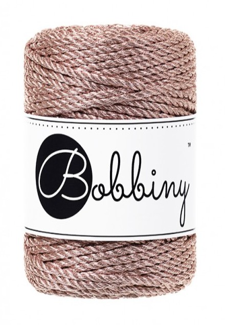 Bobbiny Metallic Platinum Macrame 3ply Rope 3mm 50m, Rose Gold