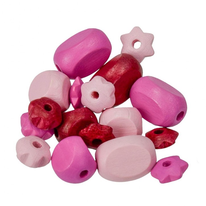 Holzperlen Farb-Formen-Mix pinkmix 30St.