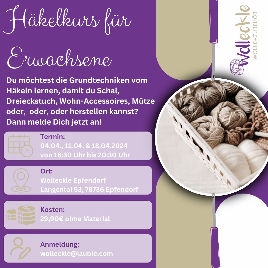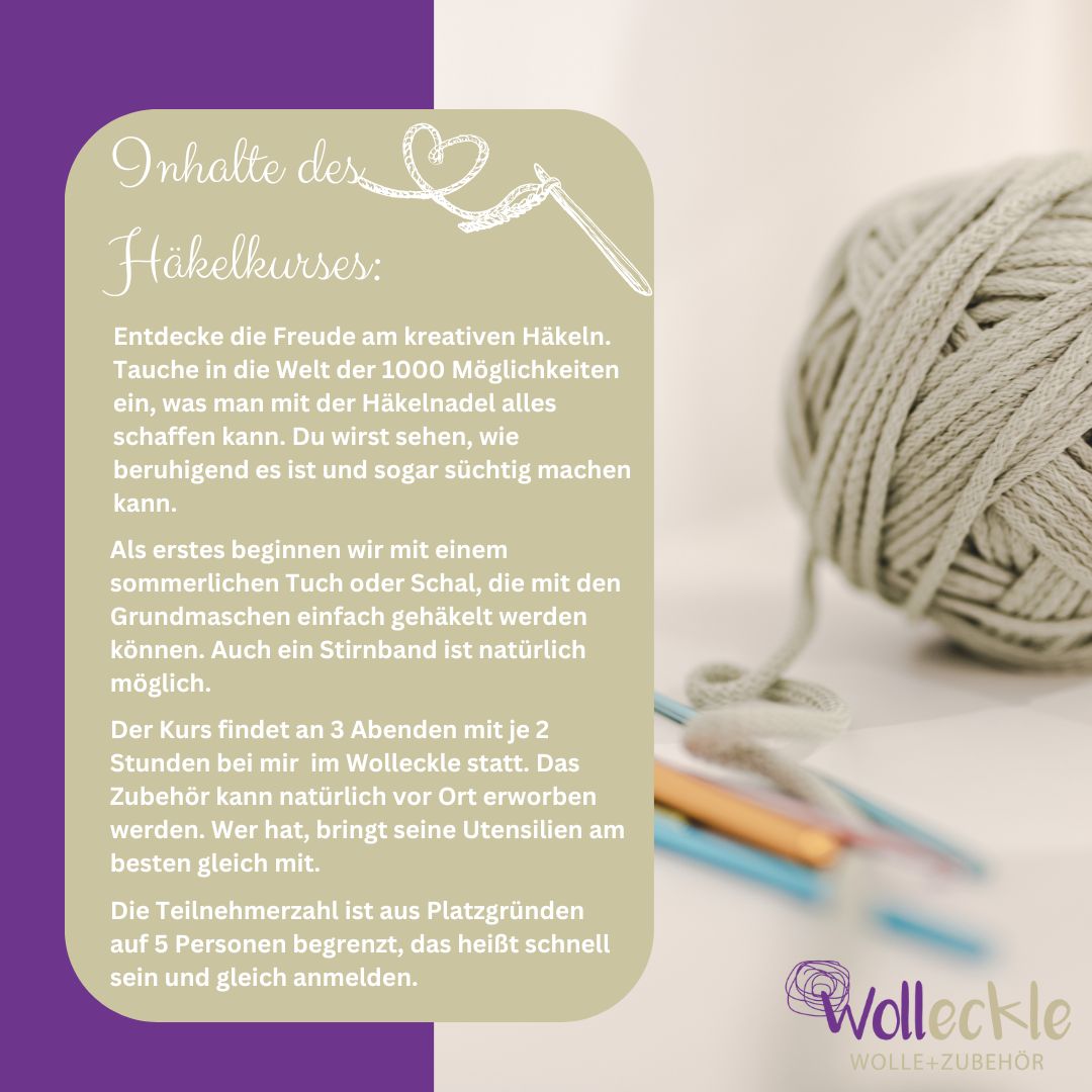Der Kurs findet an 3 Abenden mit je 2 Stunden bei mir im Wolleckle statt. Das Zubehör kann