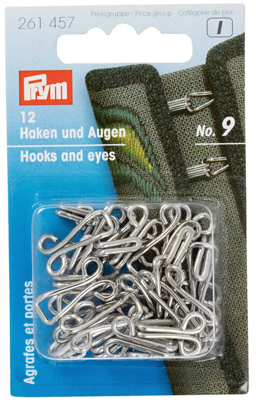 Die Joppenhaken und -augen in Größe 9 sind die passenden Verschlüsse für schwerere Bekleidung wie Jacken und Trachten. Im Gegensatz zu Knöpfen können die silbern oder schwarz beschichteten Eisenhaken und Ösen nahezu unsichtbar in die Kleidung eingenäht werden, sodass das Design des Stoffes nicht durch Knopfleisten beeinträchtigt wird. Joppenhaken und Joppenaugen sind bei Prym sowohl als Set in der 12er-Packung als auch getrennt im Karton zu je 500 Stück erhältlich. Die Verschlüsse aus rostgeschütztem Eisen sind absolut gratfrei gearbeitet und lassen sich bequem öffnen und schließen.