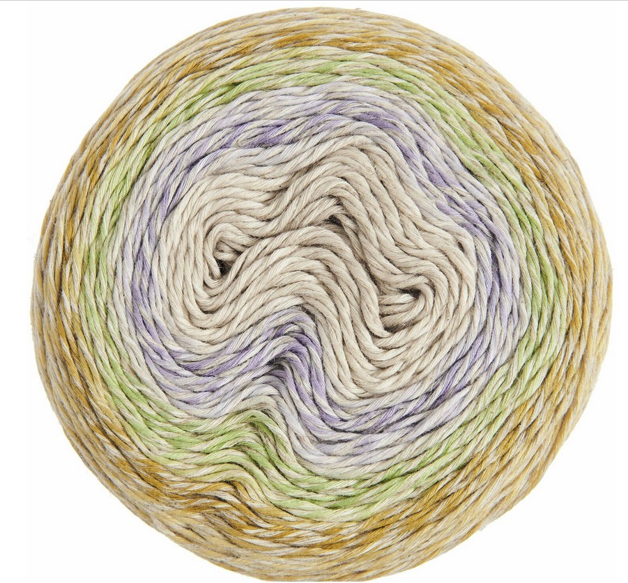 Creative Cotton Linen Cake besteht aus Polyacryl, Baumwolle und Leinen. Die Materialmischung vereint Formstabilität und Pflegeleichtigkeit mit einer natürlichen Haptik. Die Faserstruktur sorgt für eine gleichmäßige Maschenbildung. Der Leinenfaden ist nicht eingefärbt und wird mit einem Farbverlaufsgarn verzwirnt, wodurch ein Melange-Effekt entsteht. Als Kuchenknäuel zeigt das Garn einen besonderen Farbverlauf, der sich über die gesamte Breite des Knäuels erstreckt.